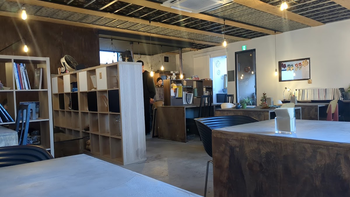 The moment you step inside, you’ll be greeted by a spacious interior characterized by a chic, concrete aesthetic complemented by warm wooden accents. The ambiance strikes a balance between modern chic and inviting comfort, making it an ideal setting for everything from casual meet-ups to solo retreats with a good book. The soft sofas near the windows invite you to sink in and relax, all while enjoying the picturesque street views of Ashikaga.